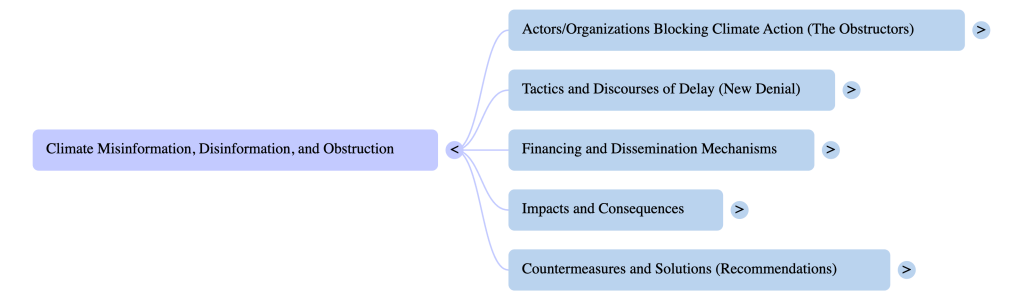 2. International Networks and Financing: Climate misinformation is often financed through concealed networks that mask the economic interests driving communications. This coordination involves funding right-wing media, think tanks, university programs, PR firms, and front groups.