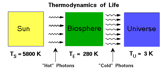 Like the Sun in its burning, life processes create entropy, but the entropy created is more like a waste product to life-forms. So, life processes borrow usable energy from the Sun for some time and use it within life-forms that require it to stay alive and to perpetuate the lifecycle (to create new life-forms that carry the fire). Pausing there for a moment, the astute reader may have noticed that stars, like the Sun, appear to be acting contrary to the second law of thermodynamics.